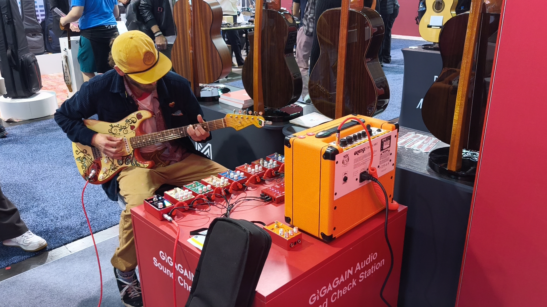 In January 2026, the global music industry once again turned its attention to NAMM Show. Stepping into GIGAGAIN’s Booth #3937, visitors were immediately immersed in a powerful visual and atmospheric experience. The brand’s signature red defined every element of the space—from the main backdrop to dynamic lighting, and from product displays to integrated visual design.